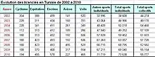 En 2010, la voile représente 5,1 % des licenciés en sports nautiques, y compris la natation, et 0,6 % des licenciés en sports individuels. En 2003, elle a représenté 1,1 % des licenciés en sports individuels, avec une proportion d'un tiers de femmes, équivalente à celle de tous les sports en Tunisie.
