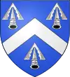 D'azur, au chevron d'argent, accompagné de trois fers de dard du même, la pointe en haut[12],[13],[14],[4]. |