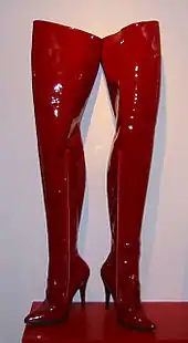 Un autre exemple type de fétichisme de la botte (celui en latex) parfois élevé ou non. Ce fétichisme se manifeste par :