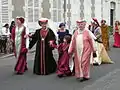 Au cours du défilé qui a lieu l'après-midi à travers la ville, des organisations de natures très diverses défilent, chacun arborant son costume de cérémonie : par exemple, parmi le groupe des universitaires, « les historiens défilent en toge jaune, les juristes en toge rouge »[18].