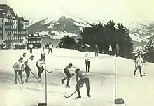 Match de bandy, à Leysin, au début du siècle