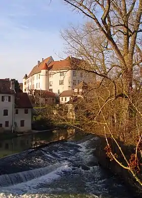 Jadis bourg fortifié, Fénétrange était réputé imprenable[27]. Il fut le siège d'une seigneurie relevant du Saint-Empire romain germanique. La famille de Malberg la scinda en 1259 en trois parties pour les deux fils de Merbode de Malberg [28]: