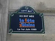 La Fête des voisins, également nommée « Immeubles en fête », est une fête à l'origine française, créée en 1999, qui se donne pour but de permettre à des voisins de se rencontrer de façon conviviale, afin de rompre l'isolement qui, selon ses organisateurs, gagne de plus en plus les villes[1], et de tenter de créer un sentiment d'appartenance au quartier.