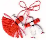 Généralement, on attache à ces fils un petit symbole : cœur, lettre, fleur ou, en Bulgarie, les poupées traditionnelles Pizho et Penda, les deux Martenitsi.