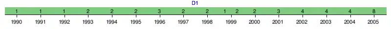 | 1990 [n 1] | 1re | 1er | 58 | 32 | 27 | 4 | 1 | 104 | 11 | -93 | Finale |