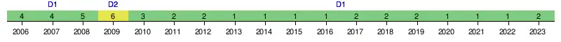 | 1991 | 1er | 24 | 14 | 11 | 2 | 1 | 31 | 8 | +23 | Vainqueur | |
