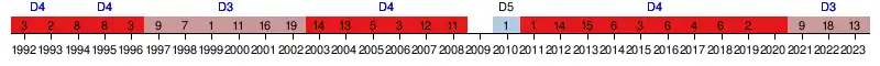 | 1993 | 4e Centre B | 2e | 57 | 22 | 16 | 3 | 3 | 52 | 21 | +31 | |