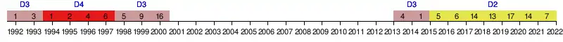| 1995 | 2e | 107 | 44 | 33 | 8 | 3 | 139 | 32 | +107 | — | |