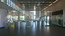 Lors de son inauguration le , cette station était équipée d'un quai à neuf portes qui ne lui permettait que de recevoir des rames à deux voitures.