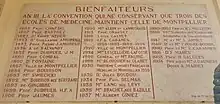 Enfin, de nombreux médecins formés à l'université de médecine s'inscriront dans ce siècle si particulier, tels Pierre Marie Auguste Broussonet. Ce médecin botaniste de la très distinguée Royal Society de Londres et de l’Académie des sciences de Paris, rapportera de Chine le ginkgo biloba, qui sera le premier à être planté en France au jardin des plantes de Montpellier (précisément en 1795 par Antoine Gouan, premier "directeur du jardin", titre supplantant celui d'"intendant royal" après la Révolution)[45]. Auguste Broussonet mènera parallèlement une carrière politique. Il sera élu à l'Assemblée Nationale en 1789 et à l’Assemblée Législative en 1791 avant d'être proscrit en tant que girondin. Il sera rappelé en France à Montpellier pour prendre la succession de Gouan en tant que professeur de botanique et directeur du jardin des plantes de 1803 jusqu'à son décès en 1807[45]. Citons encore l'érudit et philologue grec Koraïs qui obtient son doctorat à l'université de médecine en 1786 et François Mireur, qui popularisera La Marseillaise. François Mireur fait ses études à Montpellier de 1789 à 1792[58],[59]. Juste après avoir obtenu son doctorat le , il s'engage le comme volontaire dans le bataillon des Marseillais en partance pour Paris. Il est reçu le lendemain au club des jacobins de Marseille. C'est lui qui, pour la première fois, entonne à Marseille "le chant de guerre pour l'armée du Rhin" composé par Rouget de l'Isle, qui deviendra la Marseillaise. Son nom fait partie des 600 qui sont inscrits sous l'arc de triomphe de l’Étoile à Paris (côté sud)[58].