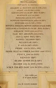 L'enseignement médical à Montpellier est né de la pratique, en dehors de tout cadre institutionnel, au début du XIIe siècle. Le seigneur de Montpellier Guilhem VIII accorde en 1181[11],[12] à « tout homme, quel qu'il soit et d'où qu'il soit » le droit de « diriger une école de médecine à Montpellier ». Dans le hall d'entrée du bâtiment historique de la faculté, on peut lire qu'un tiers des premiers médecins illustres de Montpellier étaient juifs[13],[14].
