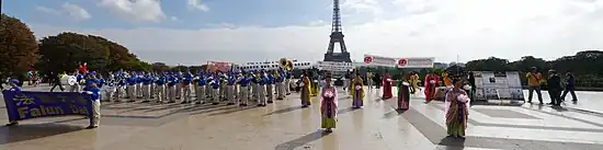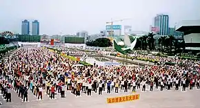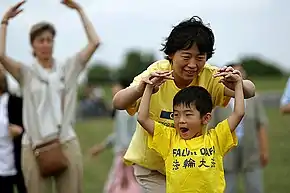 Le Falun Gong (chinois simplifié : 法轮功 ; chinois traditionnel : 法輪功 ; litt. « pratique de la roue de la loi »[1]), dont le nom officiel est Falun Dafa (法轮大法 / 法輪大法, [2]), est un mouvement spirituel inspiré du qigong, créé par Li Hongzhi. Son enseignement combine la pratique de la méditation, avec des exercices aux mouvements lents et souples, ainsi que le travail sur soi à travers ce qu'il appelle les trois principes fondamentaux : l'authenticité, la bonté et la tolérance. En dépit du fait que les universitaires occidentaux le considèrent comme un nouveau mouvement religieux (NRM), les adeptes refusent catégoriquement cette classification[3],[4].