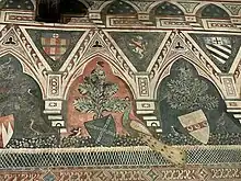 Palazzo bardi tempi, stemma alberti di catenaia - Palazzo Davanzati (Florence) : Sala dei Pavoni, Sala dei Papagalli (sur la cheminée), Camera della Castellana di Vergy (cette chambre fut décorée à l'occasion du mariage de Paolo Davizzi avec Lisa degli Alberti en 1355).