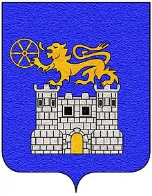 L'arme des Albrizzi se compose d'un château maçonné d'argent à deux tours de même, sur lesquelles marche un Lion d'Or, qui tient une roue de même métal avec le pied droit de devant, le tout en champ d'azur.