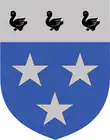 Description: d'argent chargé de trois merlettes de sable[51] |