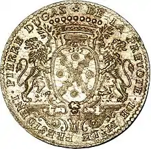 - V - Louis Dugas (Lyon.1633-1728), seigneur de Bois-Saint-Just, Savounoux, Quinsonnas, Thurins, et de La Tour des Champs[6]. Conseiller en la sénéchaussée, lieutenant-général de police, auditeur de camp, échevin en 1680, prévôt des marchands de 1696 à 1700. Il mourut le . C'était un homme d'esprit, agréable et aimant les plaisirs de la vie, beau joueur, homme politique et grand courtisan qui a toujours été très dépensier. Il était devenu sénile quelque temps avant de mourir. Il fut inhumé dans sa paroisse de Saint-Nizier à Lyon[Note 4]. Le maréchal de Villeroy avait pour lui une très forte amitié Il épousa en 1669 Claudine Bottu de la Barmondière, fille d'Alexandre Bottu, seigneur de la Barmondière, et d'Élisabeth Bessié de La Fontaine qui mourut le âgée de 78 ans en avalant une médication. Le couple eut pour enfants: