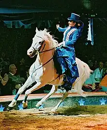 En , Francesco Fratellini, présente sa parodie comique de l'Ecuyère à panneau, lors des 2e Equestriades, au Théâtre antique d'Orange avec le Cirque National Alexis Gruss et le Cadre Noir de Saumur.