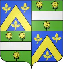 Écartelé, au premier et quatrième d'azur, au chevron accompagné de trois glands tigés et feuillés d'or, qui est de Gillès, au deuxième et troisième de sinople, à la fasce d'argent, accompagné des trois roses d'or, tigées et feuillées de sable, deux en chef [et] une en pointe, qui est de Pelichy.