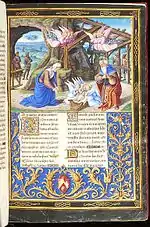 - Un livre d'heures à l'usage de Rome (manuscrit Walters W. 446) qui serait également l'œuvre de Geoffroy Tory. Il provient de Lallemant le jeune (devise Delear prius)[29] et est daté de 1520 environ. Contient des miniatures avec des séraphins portant le livre (titré delear prius) scellé (folios 9v et 35v), et d'autres avec un cilice.