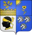 Écartelé, le premier d'azur à la pensée d'or en pointe aussi d'or et au soleil naissant en chef à dextre ; le deuxième des barons militaires ; le troisième d'argent à la tête de maure de sable, tortillée et colletée d'or ; le quatrième d'azur aux trois têtes de cheval d'argent posées deux et une.[2],[1] |