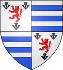 | Blasonnement | D'argent au lion de gueules à trois phéons de sable | |