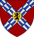 De gueules au sautoir de vair, charger en cœur d'un écu d'or au lion rampent sable lampassé de gueule brisé d'une billet d'argent.