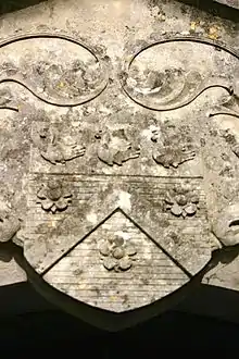 | Blasonnement | D'azur au chevron d'or accompagné de trois roses de même, au chef d'argent chargé de trois merlettes d'azur | |