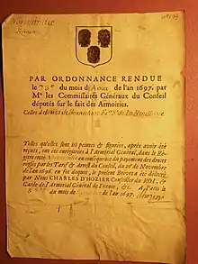 | Réformation de la noblesse | 1666 à Caen, 1667 à Alençon, 1669 à Rouen |