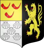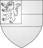 d’argent, au lion de sable lampassé, armé & couronné d’or, au franc-quartier de même à trois huchets de gueules[réf. nécessaire][6]. |