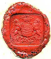 - Supports : deux lions contournés ou parfois deux épées posées en sautoir ;