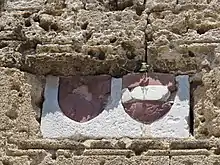 Les armes de Jean de Lastic à Rhodes. - Draguinet, seigneur de Lastic, fils du précédent. Chevalier, conseiller chambellan de Louis Ier de Bourbon, comte de Montpensier, puis du roi Charles VII, grand-maître de l'hôtel de Charlotte de Savoie. Il a servi comme chevalier-bachelier dans la guerre contre les Anglais entre 1419 et 1423. En 1426 il est chargé de la défense des châteaux de Poiron et de Tournon en Dauphiné. Né vers 1400, il est mort en janvier 1473. Il épouse Gabriel de Peyrols (morte en 1468), dame de Saint-Diéry et de Langlade, d'où deux filles