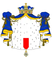| Blasonnement | De gueules fretté de six lances d'or, les claires-voies semées d'écussons du même, sur le tout un écu d'azur chargé d'un fleur de lys d'or. | |