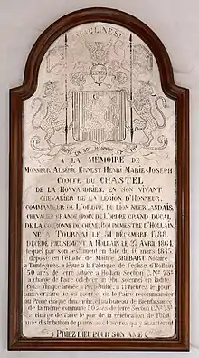 - Alberic du Chastel (1788-1864), colonel, aide de camp du prince d'Orange, bourgmestre de Bruyelle et de Hollain, membre de la Seconde Chambre des États généraux