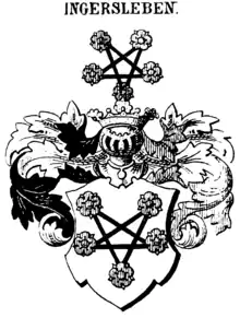 La famille von Ingersleben est originaire du lieu du même nom, aujourd'hui Ostingersleben près d'Haldensleben sur le territoire des archevêques de Magdebourg[1]. La famille y apparaît pour la première fois dans un document en 1209 avec les frères Heitericus et Linderus de Ingerslove[2], ainsi qu'en 1211 avec Johannes de Ingersleve[3]. La lignée sûre commence avec Otto von Ingersleben, qui est inféodé à Wolmirsleben en 1457[1].