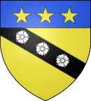 Armes : d'azur à un chef cousu de gueules, émanchi d'or de trois pièces.[3] ou D'azur, au chef cousu de gueules émanché de trois pièces d'or.