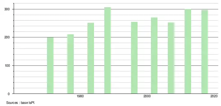 En 2017, la commune comptait 296[Note 1], en diminution de 1,33 % par rapport à 2012