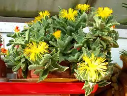 Faucaria est un genre botanique d'environ 33 espèces de plantes succulentes tropicales à fleurs de la famille des Aizoaceae.