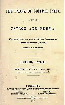 Première page du livre Fishes Vol. II de Francis Day de la série The Fauna of British India including Ceylon and Burma, 1889.
