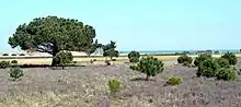 - Dans les différentes parties des sols sableux du littoral qui vont de la plage à la dune boisée, on rencontre des espèces comme Centaurea aspera, Crepis bulbosa, Alyssum minus, la Silène de Thore (Silene thorei), la Luzerne marine (Medicago marina), l'Euphorbe maritime (Euphorbia paralias), la roquette de mer (Cakile maritima), des filaires (Phillyrea angustifolia - Filaire à feuille étroite et Phillyrea latifolia - Filaire à feuille large), l'Osyris blanc (Osyris alba) ainsi que l'érable de Montpellier.