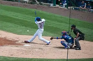 Lorsque la balle dévie sur le bâton du frappeur et atterrit dans le gant du receveur sans avoir touché le sol ou le marbre (appelé foul tip en anglais), une prise est enregistré même si le frappeur n'a pas complété son élan pour frapper la balle. Cette situation peut servir de troisième prise, donc de retrait.