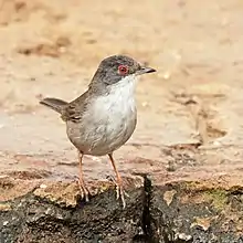 Elle peut facilement être distinguée de sa cousine la fauvette à tête noire, dont la calotte noire s'arrête au niveau de l'œil et non dessous, et qui ne possède pas de cercle orbital rouge.