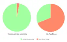 Par exemple, bien que la communauté scientifique attribue le réchauffement climatique à l'activité humaine depuis la révolution industrielle[8],[9],[10],[11], il existe un petit nombre de scientifiques qui contestent cette conclusion[12],[13],[14]. En donnant une couverture égale aux scientifiques des deux côtés, certains médias donnent l'idée que le point est controversé au sein de la communauté, alors que ce n'est pas le cas.