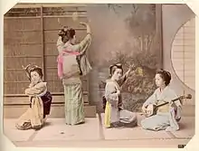 Souvent, lorsqu'est évoquée la Japonaise, beaucoup pensent aux geisha, artistes traditionnelles qui agissent comme hôtesses et dont les compétences consistent à exécuter divers arts japonais tels que la musique japonaise traditionnelle, la danse, des jeux et à entretenir une conversation, principalement pour divertir une clientèle masculine[15].