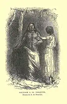 Du fait de cette surmasculinité, mais aussi de la spécificité des cultures autochtones, les premiers colons font largement appel aux femmes. Les Européens, interprétant les réalités amérindiennes d'après leurs propres valeurs, attribuent volontiers aux hommes autochtones un mode de vie « noble », voire comparable à celui des héros antiques, consistant à combattre, chasser, se livrer aux jeux sportifs, confectionner des canots et se reposer le reste du temps, alors que les femmes sont « esclaves » et assurent l'essentiel des tâches utilitaires[11]. Ce mode de vie est d'autant plus perturbateur pour la société européenne qu'il est ressenti comme attractif par les coureurs des bois qui vont commercer et chasser parmi les Indiens[12]. S'il est rare qu'une femme européenne aille vivre parmi les autochtones et se marie « à la mode du pays », il est beaucoup plus courant, surtout dans les premiers temps de la colonie, qu'un colon prenne une femme autochtone. Au 17e siècle, ces mariages mixtes sont généralement bien vus du clergé et des administrateurs qui y voient à la fois une manière de limiter les débordements sexuels et d'élargir le peuplement de la colonie ; vers 1635, les jésuites demandent même au pape la permission de célébrer des mariages entre hommes chrétiens et « filles sauvages non baptisées », ce qui leur est refusé. Le roi autorise cependant le mariage entre un Français et une autochtone « pourvu qu'elle soit chrétienne ». Au siècle suivant, si certains administrateurs croient encore aux vertus du mariage pour sceller des alliances avec les nations autochtones, d'autres cèdent de plus en plus à un préjugé défavorable au métissage considéré comme une déchéance et une altération de la « pureté de sang[13] ». Le métissage est généralisé en Acadie mais plus rare au Québec car la femme autochtone, contrairement à la Française, n'apporte pas de dot au ménage[14].