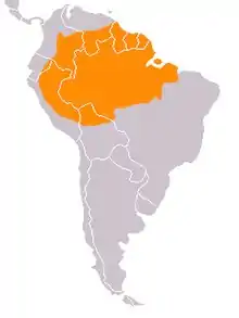 Cette espèce se rencontre en Colombie, dans l'est de l'Équateur, dans l'est du Pérou, dans le nord de la Bolivie, au Brésil, au Guyana, au Suriname, en Guyane, au Venezuela et sur l'île de Trinité[2].