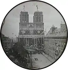 Pour le service funèbre du prince, on manqua de tissu noir pour tapisser Notre-Dame, l'architecte Visconti eut l'idée d'utiliser du papier noir.[réf. nécessaire]