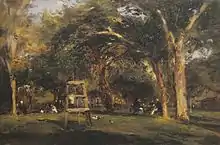 Boudin y entraîne bientôt la fine fleur des peintres parisiens et normands qui viennent s'exercer à cette lumière incomparable, accompagnés parfois de poètes et de musiciens. Gustave Courbet appartiendra également à cette colonie d'artistes à l'embouchure de la Seine[3]. Ils y trouvent le gîte et le couvert pour 40 francs par mois :