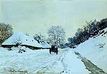 Il peindra là toutes ses études « effets de neige », et notamment l’œuvre célèbre « Route sous la neige ». Le peintre est sorti devant Saint-Siméon, et l’on aperçoit son grand pressoir couvert de neige, sur la gauche et la route vers Honfleur, où passe une charrette. (Musée d'Orsay). Il faisait ainsi des conditions atmosphériques son véritable sujet d’étude, comme l’avaient fait avant lui Jongkind et Boudin.