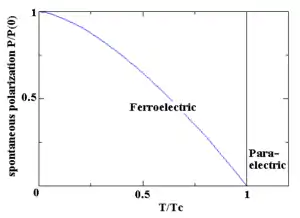 Un composé dit ferroélectrique ne l'est en général que dans un domaine de température et de pression donné. La plupart des ferroélectriques présentent une phase paraélectrique à suffisamment haute température. La température de transition ferroélectrique-paraélectrique est appelée température de Curie, et notée TC.