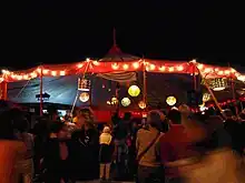 Le Parking du centre, est renommé place du festival lors de chaque édition, et équipé d'une scène sous chapiteau, tables et bancs au centre et d'échoppes sous tente sur le périmètre. Spectateurs, organisateurs, bénévoles, touristes de passage et invités s'y croisent, y flânent, y écoutent un concert, y boivent, y mangent, y débattent, y dansent... jusque tard dans la nuit. Les langues, les cultures, les orientations sexuelles et de genre s'y mélangent dans un joyeux bazar[7]. Il est fréquent de pouvoir y observer des animations improvisées d'artistes au cours de la journée : jeune groupe sur scène, fanfare passant entre les tables...